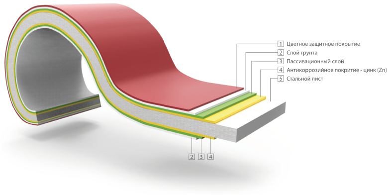 Профнастил производится из тонколистовой стали, а защитное покрытие представляет собой очень тонкий слой, который практически не влияет на вес готового изделия.